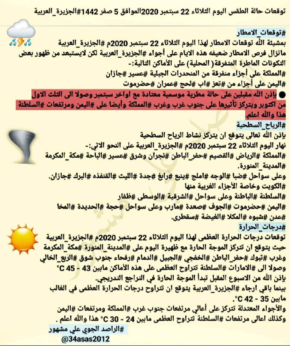 السعودية حالة الطقس ودرجات الحرارة المتوقعة يوم الأربعاء 2020 4 1 طقس العرب